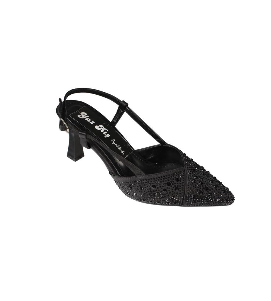 YAZKIŞ Kadın Siyah Laci Ten Gümüş Sivri Burun Üstü Taşlı 8cm kadeh Topuk Abiye Ayakkabı