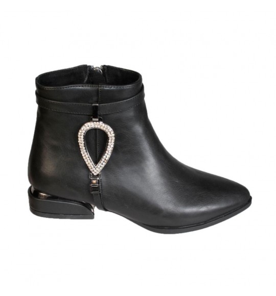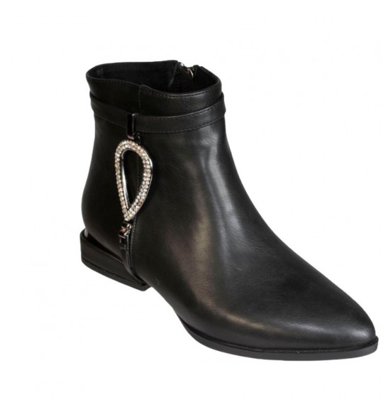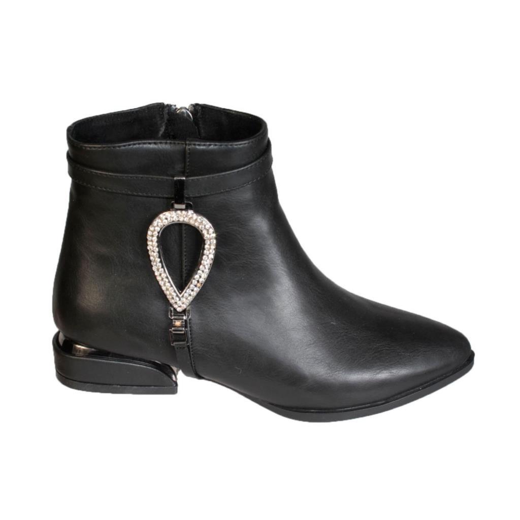 YAZKIŞ Kadın Siyah Nut 3cm Topuk Damla Taş Tokalı Bilekten Bot