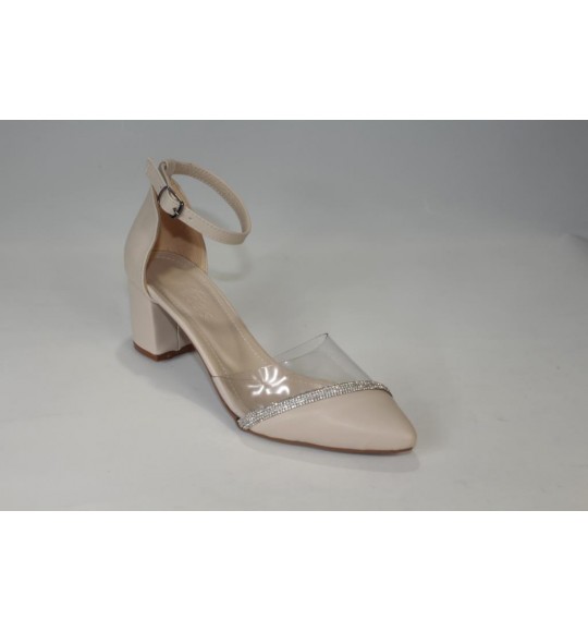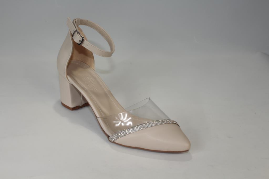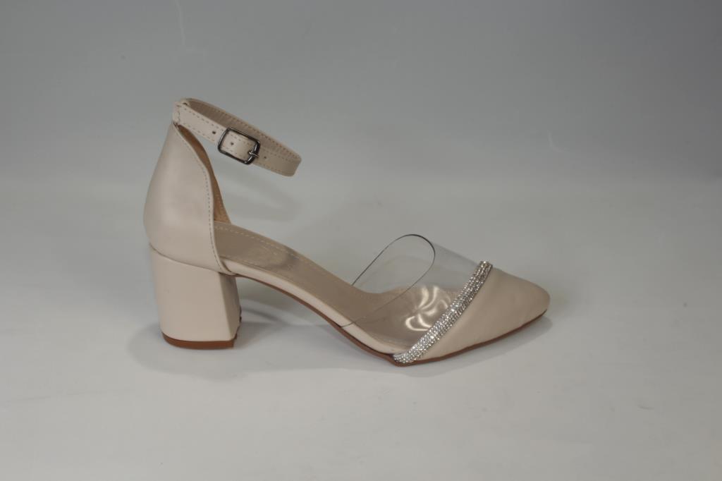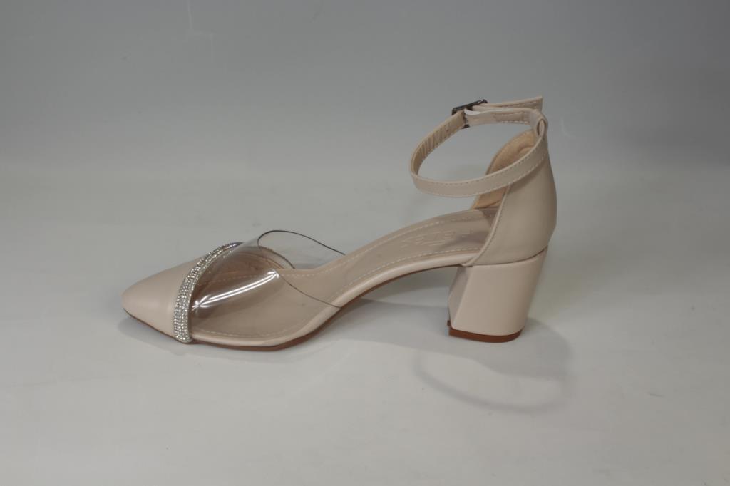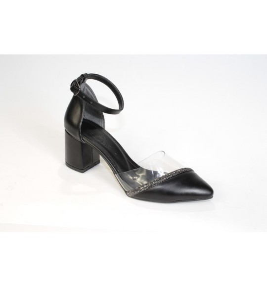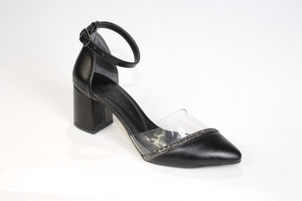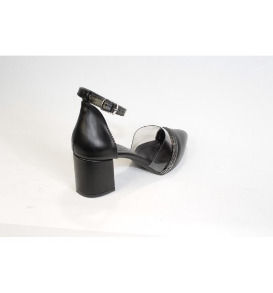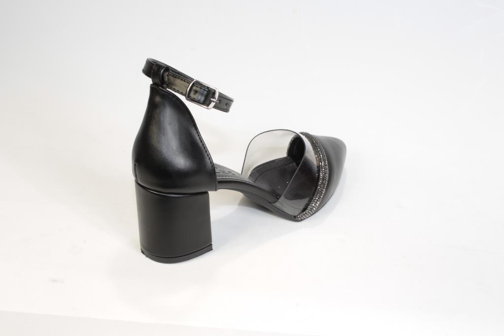 YAZKIŞ Kadın Siyah Ten 5cm Kalın Topuklu Üzeri Yarı Şeffaf Taşlı Nişan Abiye Mezuniyet Ayakka