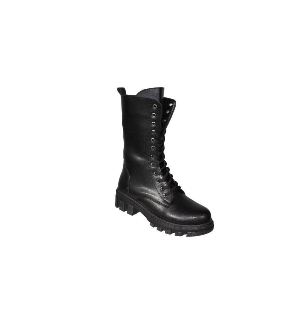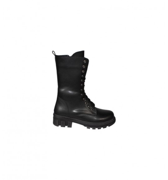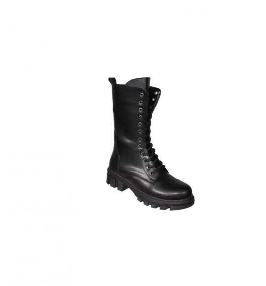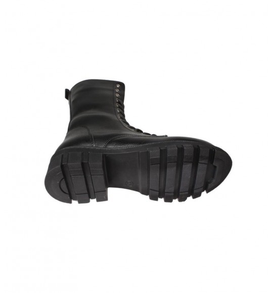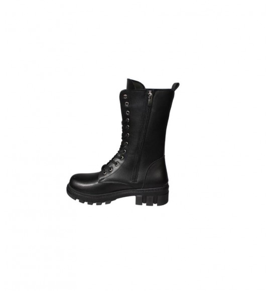 YAZKIŞ Kadın Siyah Ten Cilt 22cm Bilek Boyu Bağcıklı Yandan Fermuarlı Soğuya Dayanıklı Postal Bot