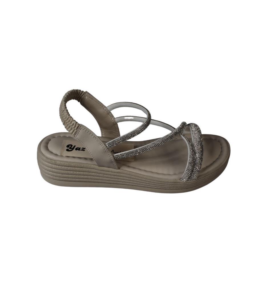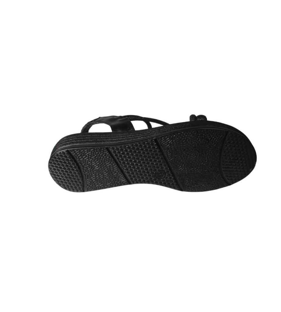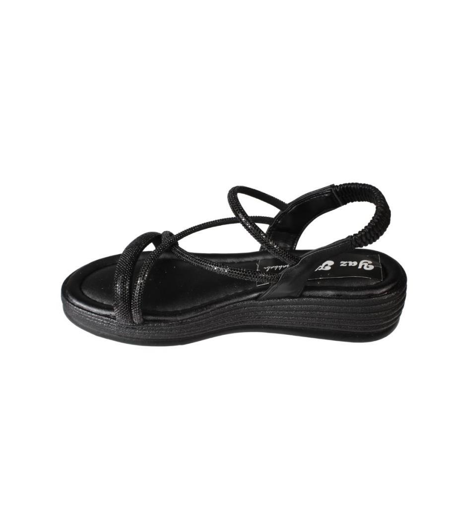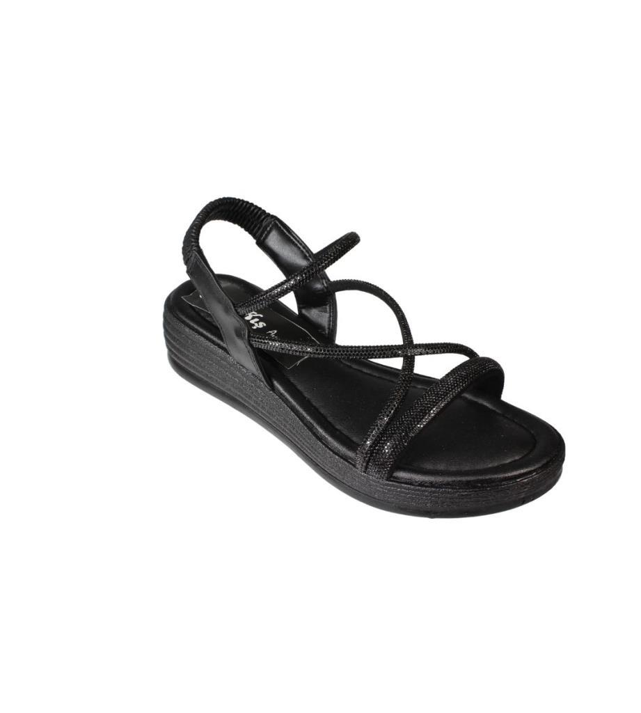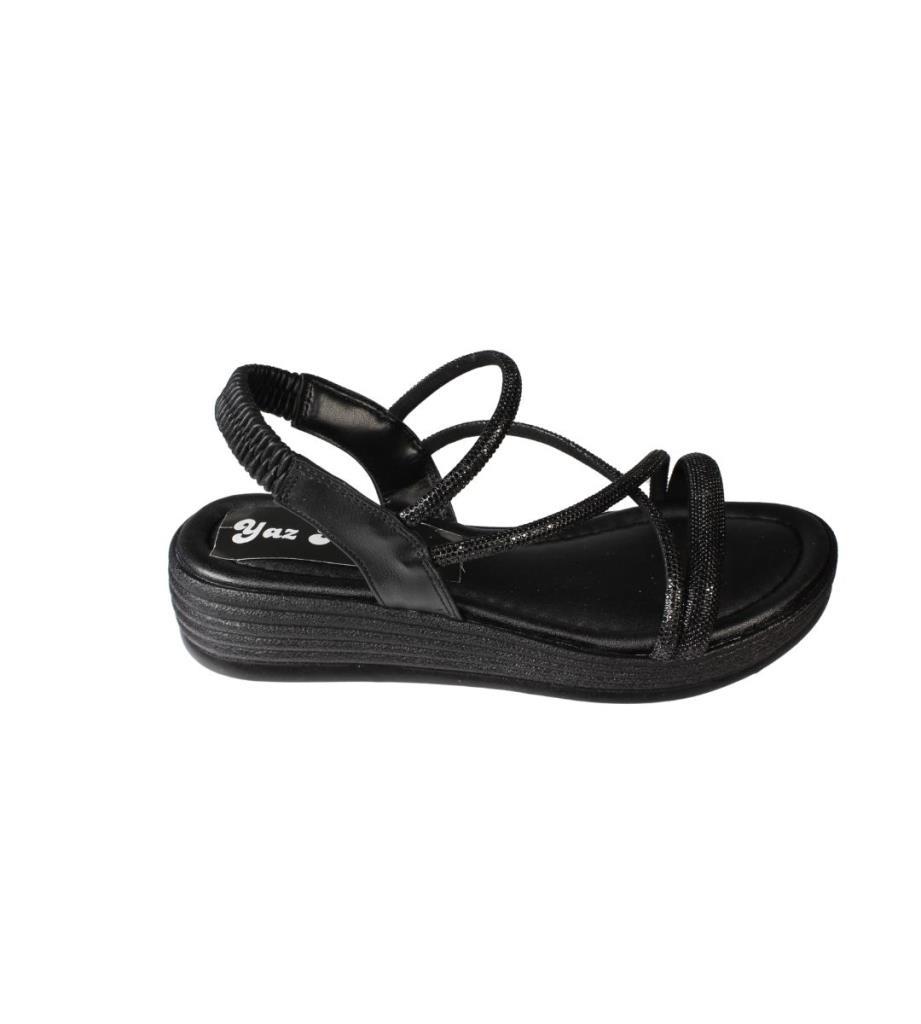 YAZKIŞ Kadın Siyah Ten Cilt Çift Bantlı Üzeri Çapraz Taşlı 4cm Arkası Lastikli Kalın Taban Sandalet