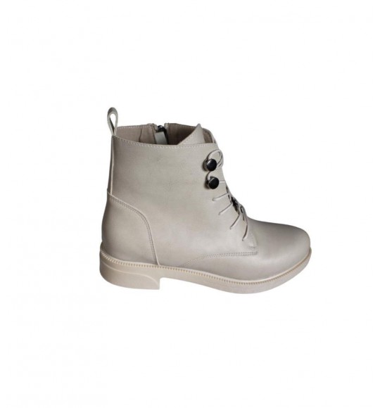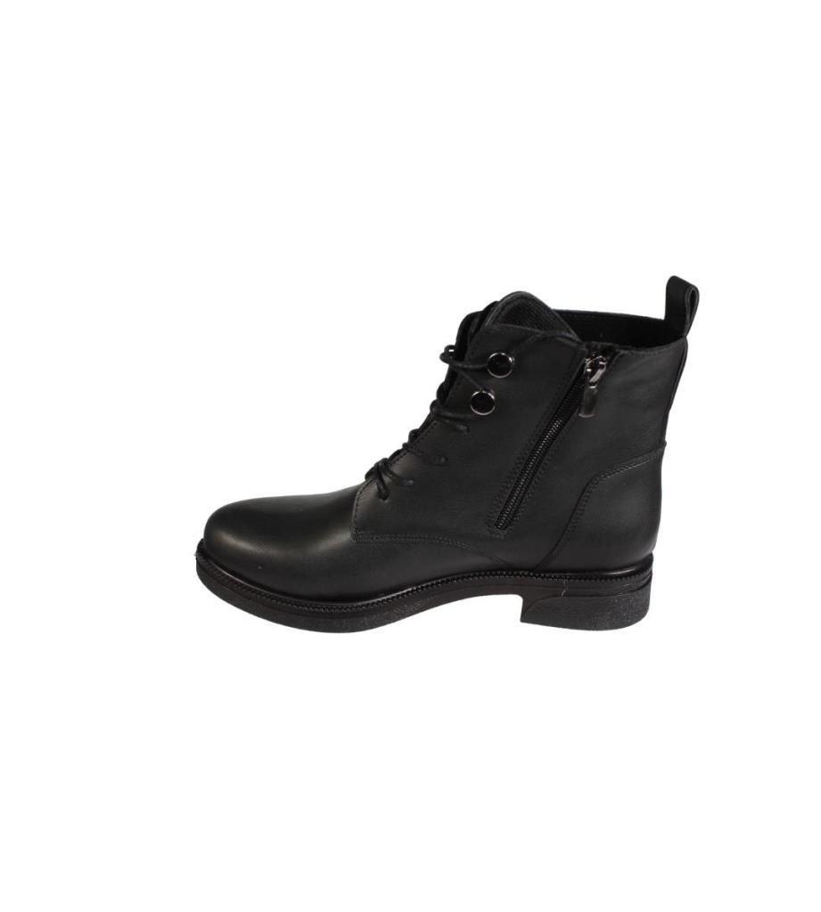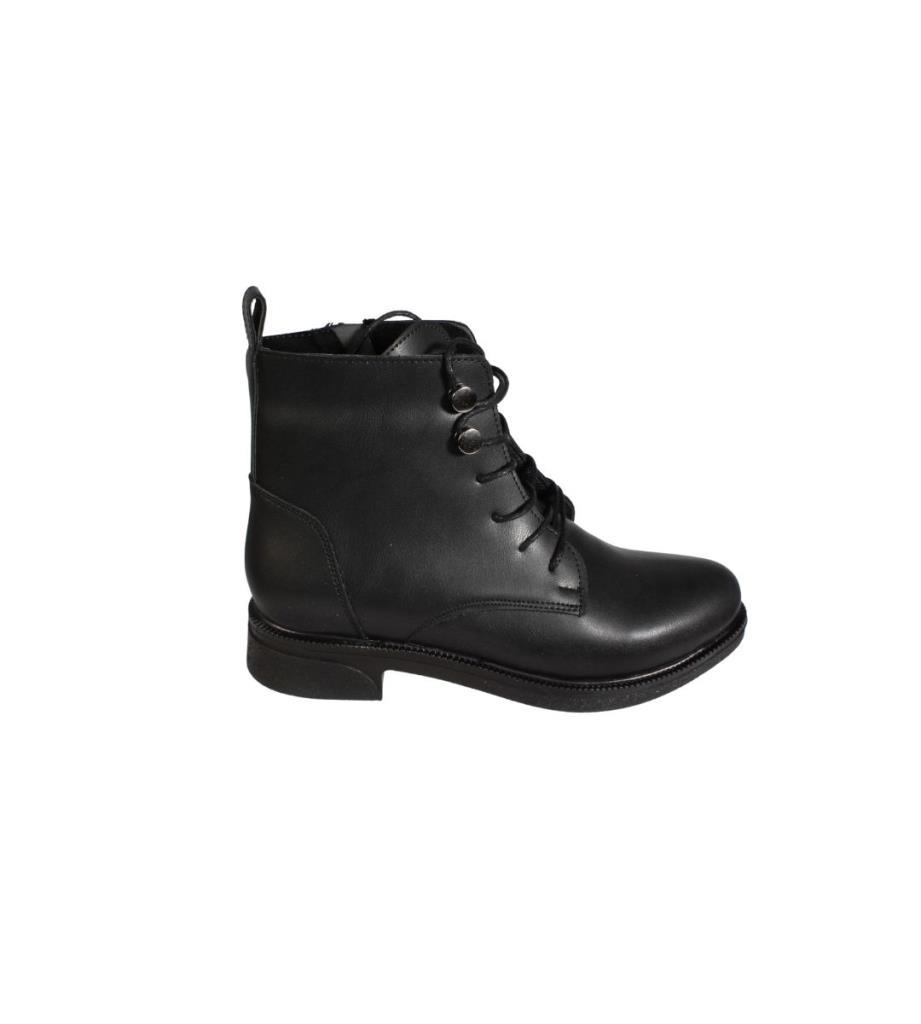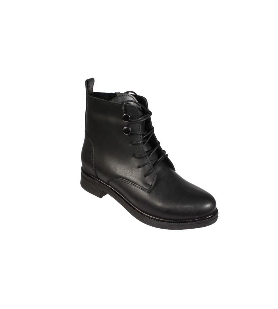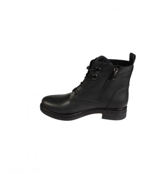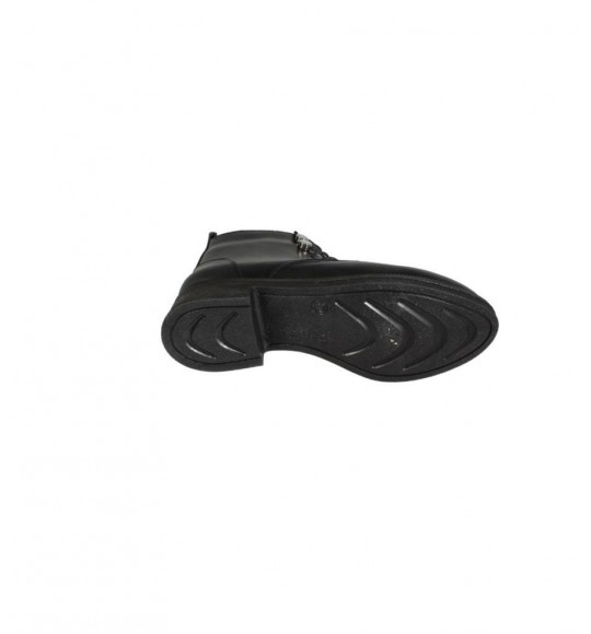 YAZKIŞ Kadın Siyah Ten Cilt Düğmeli Bağcıklı 13cm Bilek Boyu 3cm Düz Taban Bot