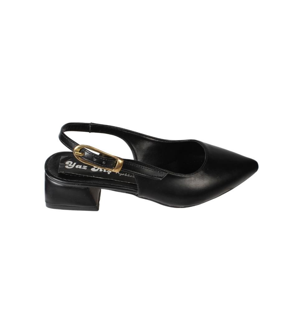 YAZKIŞ Kadın Siyah Ten Cilt Önü Kapalı Arkası Açık 4cm Kalın Topuk Ayakkabı