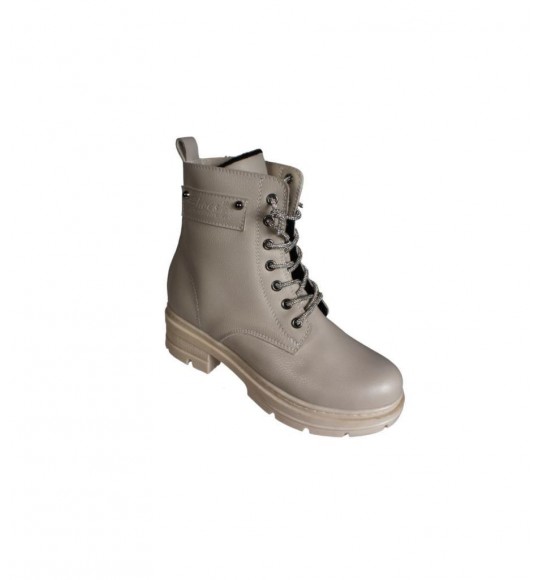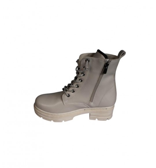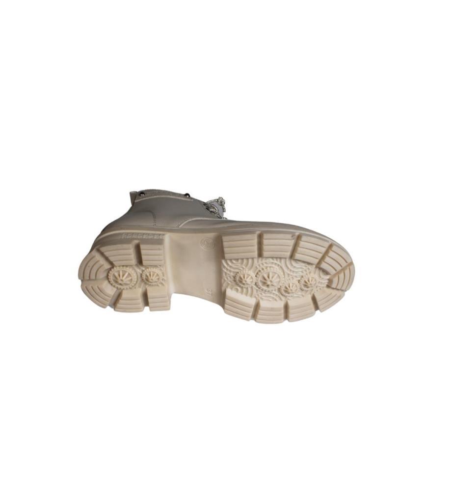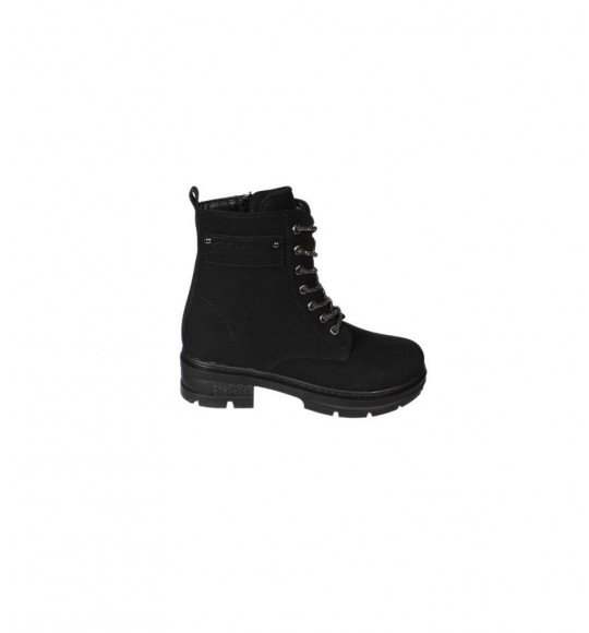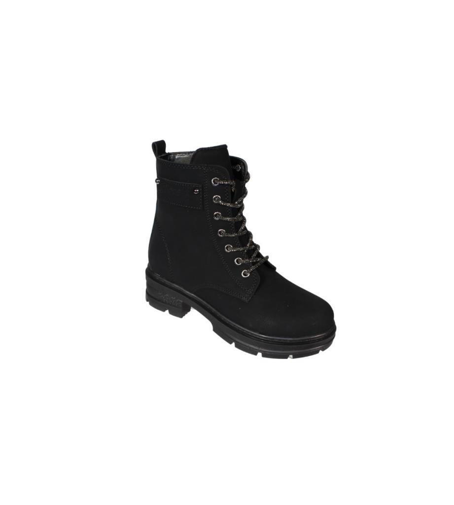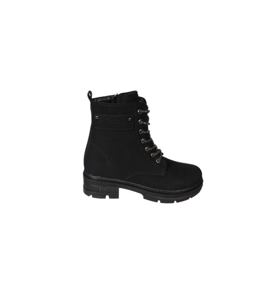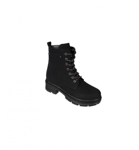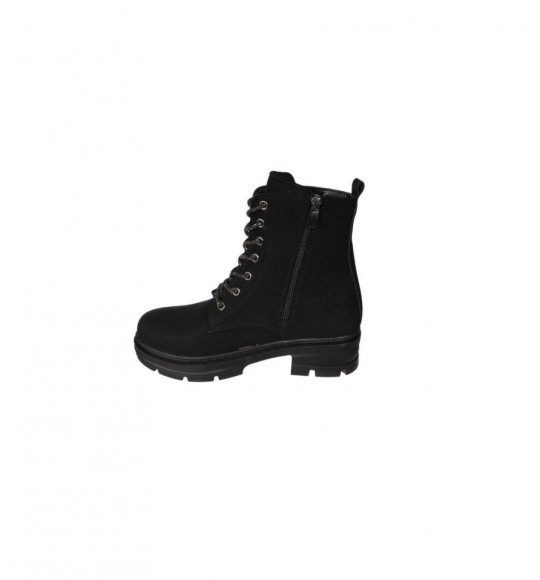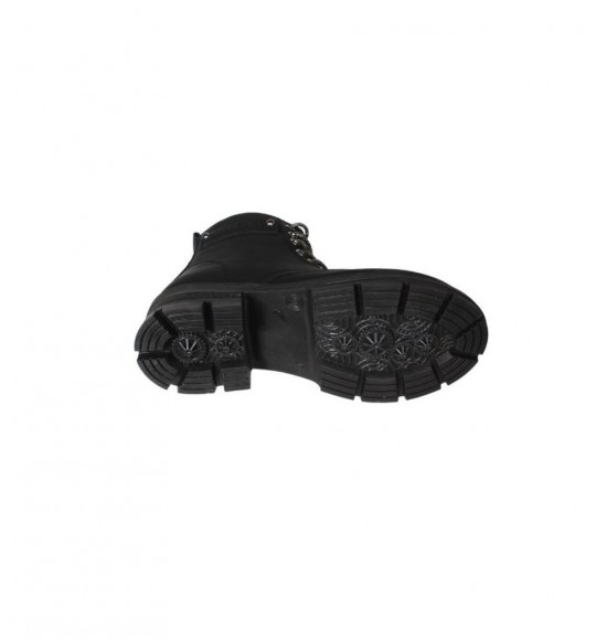YAZKIŞ Kadın Siyah ten Cilt Taş Bağcıklı 14cm Bilek Boyu 5cm Kalın Taban Düz Bot