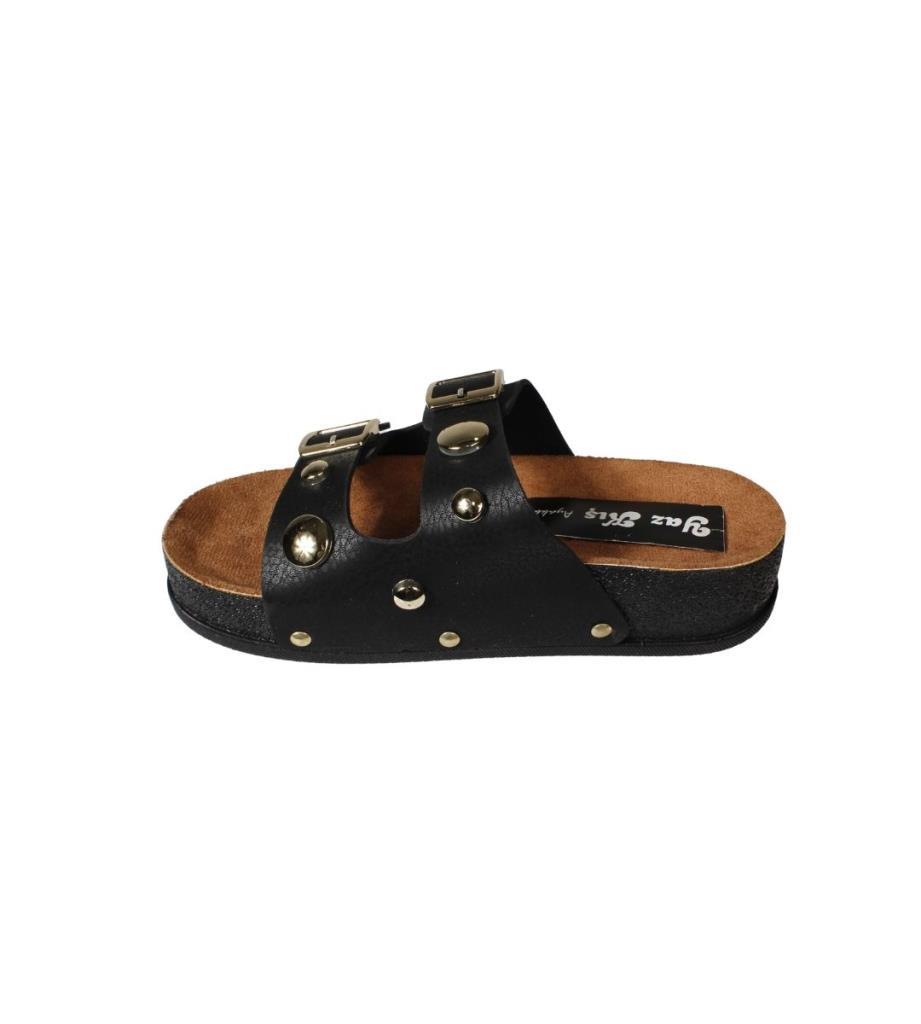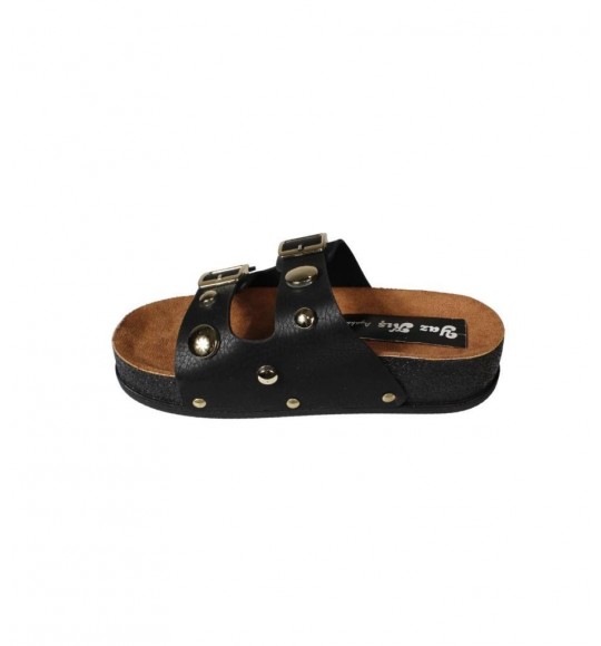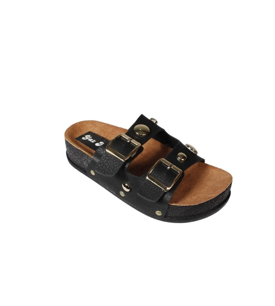 YAZKIŞ Kadın Siyah Ten Cilt Üzeri Altın Detaylı Çift Bantlı Geniş Taraklı 4cm Rahat Taban Terlik