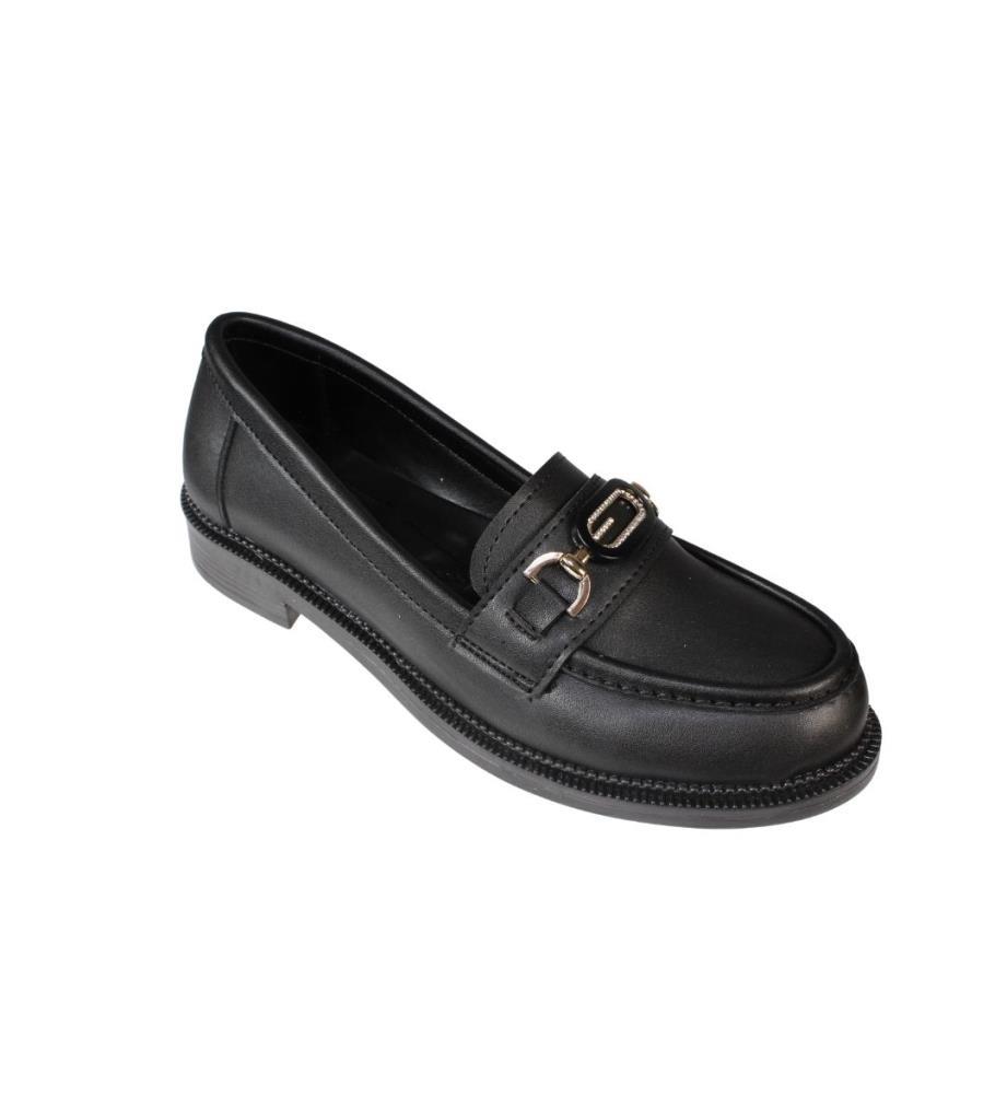 YAZKIŞ Kadın Siyah Ten Cilt Üzeri Oval Taşlı Oxford Babet Ayakkabı