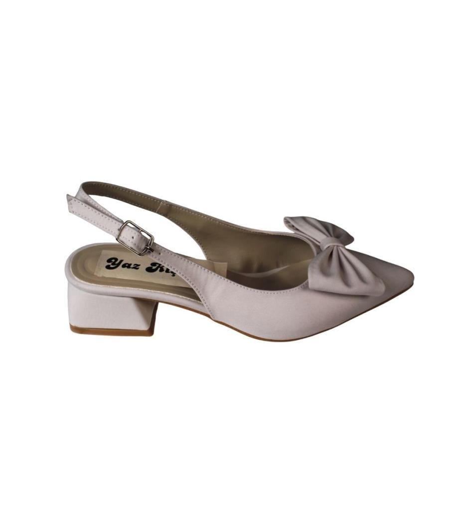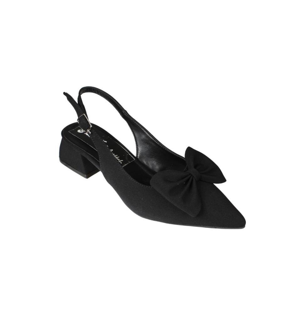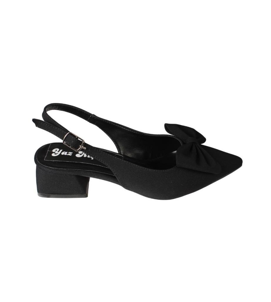 YAZKIŞ Kadın Siyah Ten Kumaş Üzeri Fiyonklu 4cm Kalın Topuk Arkası Açık Ayakkabı