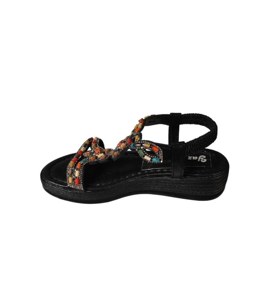 YAZKIŞ Kadın Siyah Ten Üzeri Taşlı Bileği Lastikli 4cm Rahat Taban Sandalet