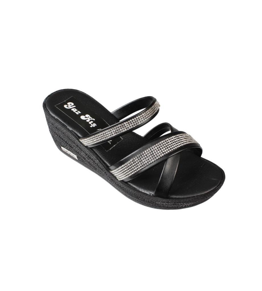 - Şık tasarımıyla dikkat çeken siyah taşlı mantar taban terlik, yaz aylarında şıklığınızı tamamlar.