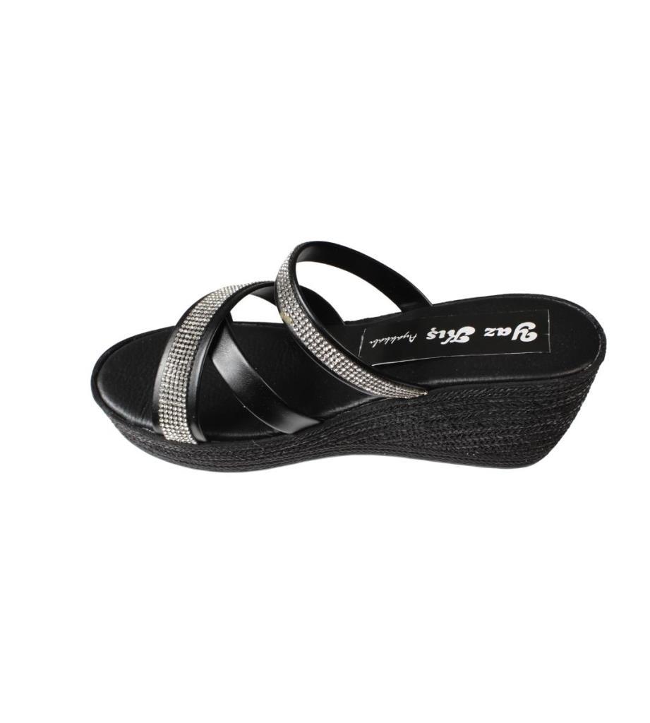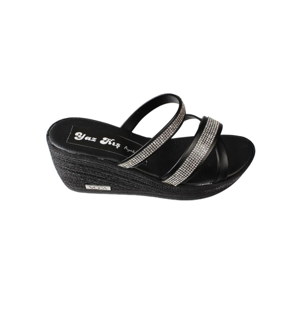 YAZKIŞ Kadın Siyah Üzeri Çapraz Taşlı 6cm Dolgu Topuk Terlik